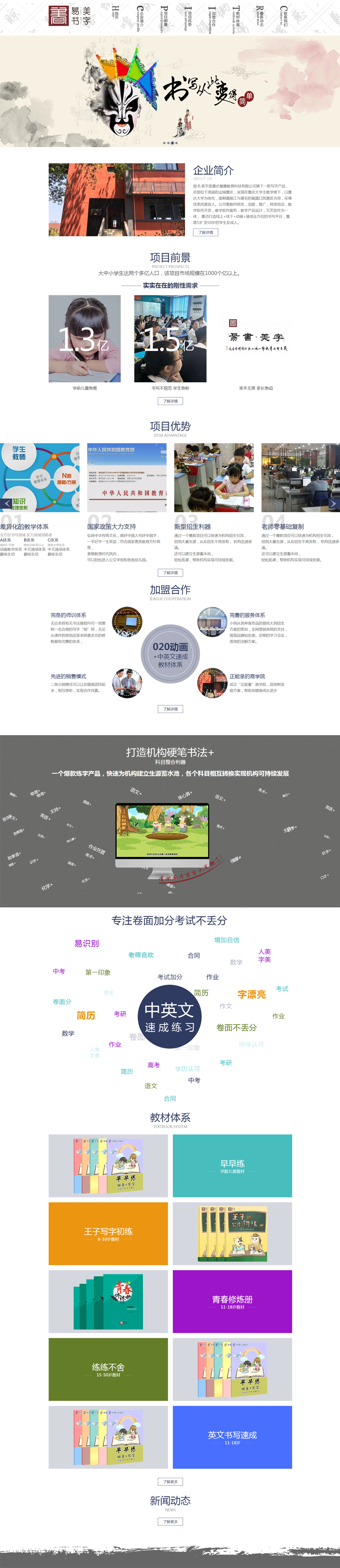 Project Description 易书.美字练字是重庆慧墨教育科技有限公司旗下一款写字产品,总部位于美丽的山城重庆,坐落 在重庆大学主教学楼下,以重庆大学为依托,面朝嘉陵江与著名的磁器口风景区为邻,环境优美 风景宜人。公司集教材研发,出版,推广,师资培训,教学软件开发,教学软件服务,教学产品 设计,文艺创作为一体,重点打造线上+线下+动画+速成全方位的书写平台,覆盖5岁至50岁的学 ... Official website address 通化# I want to share